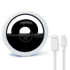 Anel De Led Luz Selfie Mini Ring Light Android e iOS - Preto Anel De Led Luz Para Selfie Clipe Mini Ring Light Flash Recarregável Celular Android e iOS