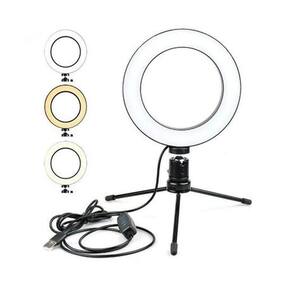 Anel de Luz LED 16 cm Youtuber Blogueira + Tripé Anel de Luz LED de 16 centímetros, desenvolvido para maquiadores, fotógrafos, cinegrafistas e etc, que buscam uma ótima maneira de iluminar com perfeição. É possível controlar as diferentes temperaturas de cores através do controle de ajuste que vai de 3500k à 5500k. Na frente dos leds tem um filtro difusor para suavizar a luz espalhando a luz com maior uniformidade.