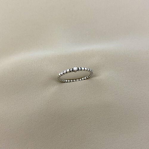 Anél de Prata Envelhecida com Ponto de Luz de Zircônia (Prata 925)