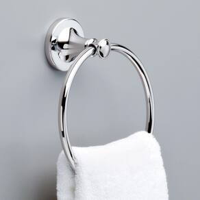 - Este anel de toalha ajudará com a bagunça do banheiro em um acabamento cromado polido refrescante.