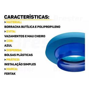 Características do produto Anel Vedação Vaso Sanitário Com Guia Fertak Fácil Instalação Descubra a solução ideal para seu problema de vazamento e mau cheiro nos vasos de banheiros com o Anel de Vedação Para Vaso Sanitário com Guia da marca Fertak. Com ele, você não precisa usar bolsas plásticas e a instalação do produto é de fácil manipulação. Possui ajuste para adequar perfeitamente o vaso sanitário para otimizar o seu funcionamento. Não perca mais tempo e resolva seus problemas com o Anel de Vedação Para Vaso Sanitário com Guia Fertak. Características: Não necessita de bolsa plástica; Evita vazamentos e mau cheiro; Produto de fácil instalação; Ajusta o vaso sanitário; Especificações Técnicas: Material: Borracha; Cor: Azul; Sistema de Instalação: Com guia; Utilização: Vaso Sanitário; - Marca: Fertak - : 6 meses contra defeitos de fabricação DÚVIDAS FREQUENTES: 1 - Os produtos são novos R: Todos os produtos são novos e com . 4 - Como são realizadas as entregas R: Sim, nos anúncios que exibirem essa opção. Imagens meramente ilustrativas Ean: 7908642000811