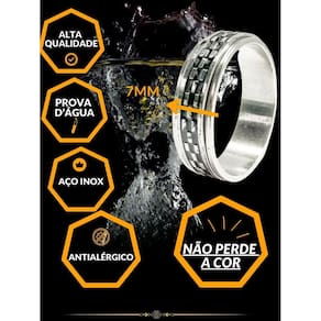Anel dedeira 7mm masculino giratório prateado preto minimalista elegante básico aço inox Tamanho: 17 Anel dedeira 7mm masculino prateado preto minimalista elegante básico aço inox prova d'água Anel masculino é uma ótima opção para ficar na moda e dar um up no visual. Com material de aço inox, é perfeito para todas as ocasiões. Ideal também para presentear um amigo ou namorado. Anel aço inox, não descasca e não enferruja, podendo usar diariamente. ===================================== Fotos reais do produto na galeria Modelo a prova d'água, podendo usar em piscinas e praias, não descasca, não escurece, não perde a cor Detalhes técnicos: Marca: visujóias Modelo: anel masculino minimalista Espessura anel: 7mm Incluso: 1 unidade anel masculino Material: aço inoxidável. Código do produto sku : 3451 : 6 meses. Todas as peças possuem tratamento antialérgico. =============================================================================== P:minha compra é segura R:toda compra que é feita aqui está em ambiente seguro, isso significa que se caso ocorra algum imprevisto faremos o estorno de seu pagamento. R: sim. P: produto é a prova d'água R: sim, pode usar em piscinas e praias que não escurece. P: tem R: sim, todos os nossos produtos tem de 6 meses, contra defeitos de fabricação. Todas as informações de cuidados são enviados junto com o produto. P: posta em quanto tempo P: posso trocar se não servir R: sim, enviamos nosso contato junto com o produto para orientação sobre troca. P: posso devolver se não gostar R: sim, caso não goste do produto é só entrar em contato conosco que iremos orientá-lo como efetuar a devolução. Dúvidas Pergunte à vontade, estamos aqui. Ficaremos felizes em responder rapidamente. Aguardamos sua compra e estamos ao seu dispor : Marca: Não Informado Ean: 7732647217581