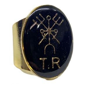 Anel Dourado Ajustável Orixá Exú 2,7 cm em Metal - Selecione Cor: Tranca Rua Preto Anel Dourado Ajustável Orixá Exú 2,7 cm em Metal