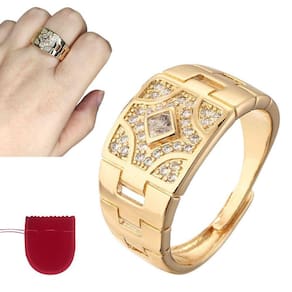 Anel Dourado Banhado a Ouro com Zircônias Ajustável Lindo Anel Ajustável Banhado a Ouro com Zircônias Perfeito para todas as ocasiões, inclusive para presentear, já que não precisa saber exatamente o tamanho pra comprar. Por ser ajustável cabe perfeitamente em qualquer circunferência anelar.Bela peça, acessório imponente, multifacetado, com fino acabamento.Largura de superfície: 20mm Peso líquido: cerca de 7,2g Acompanha saquinho de veludo.