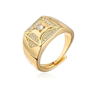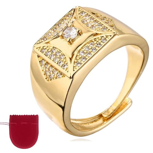 Anel Dourado Banhado a Ouro Zircônias Regulável + Saco Veludo Lindo Anel Ajustável Banhado a Ouro com Zircônias Perfeito para todas as ocasiões, inclusive para presentear, já que não precisa saber exatamente o tamanho pra comprar. Por ser ajustável cabe perfeitamente em qualquer circunferência anelar. Bela peça, acessório imponente, multifacetado, com fino acabamento. Largura de superfície: 20mm Peso líquido: cerca de 7,2g