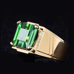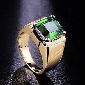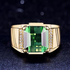 Anel Dourado Banhado Pedra Verde E Zircônias Ajustável