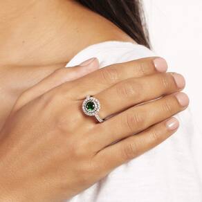 - verde Forma da pedra central: redonda EUA Tamanho do anel: