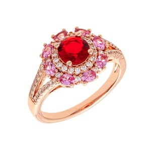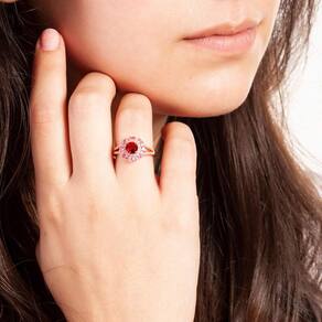 - vermelho Forma da pedra central: redonda EUA Tamanho do anel: