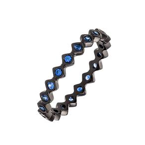 da joia: 3 mm - Latão banhado a ouro preto 18k - Zircônia cúbica azul - Pedras - de corte redondo - Tamanho 5 - Sem grafite e níquel