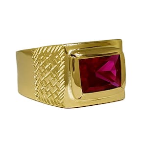 Anel Em Ouro Masculino Pedra Retangular