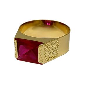 Anel Em Ouro Masculino Pedra Retangular