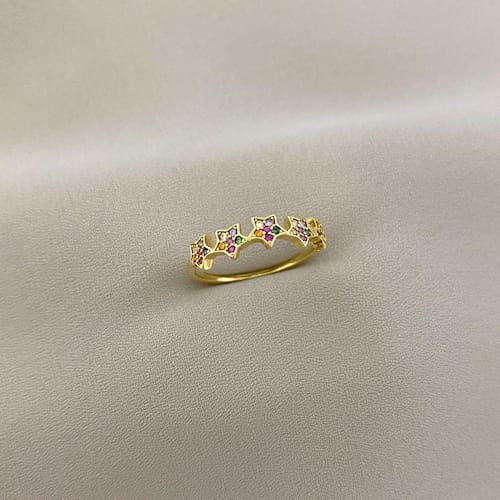 Anél Estrelas Cravejadas com Zircônia Colorida Banhado a Ouro