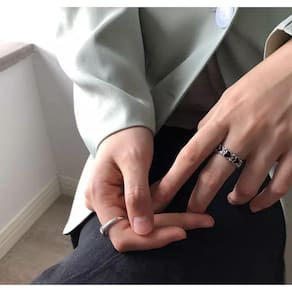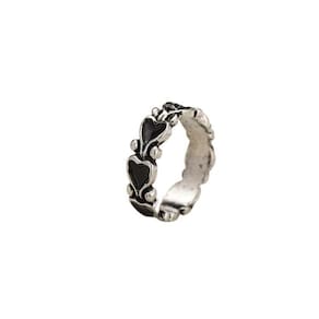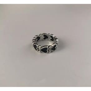 Anel formato coração prateado preto detalhes g4421