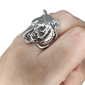 Anel Grande Prateado Cara Tigre Regulável + Saquinho Veludo