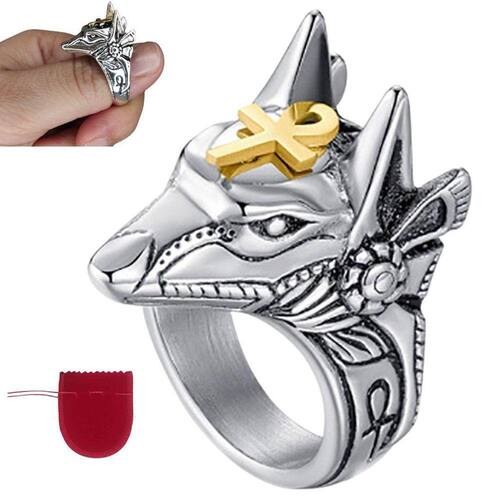 Anel Grande Prateado Deus Anúbis Egito Regulável Lindo Anel Prateado Ajustável você pode apertar ou alargar, caso seja necessário Perfeito para todas as ocasiões, inclusive para presentear, já que não precisa saber exatamente o tamanho pra comprar.Por ser ajustável cabe perfeitamente em qualquer circunferência anelar.Bela peça com fino acabamento.Largura de superfície: 19mm Peso líquido: cerca de 6g Acompanha saquinho de veludo. Marca: Pjk store