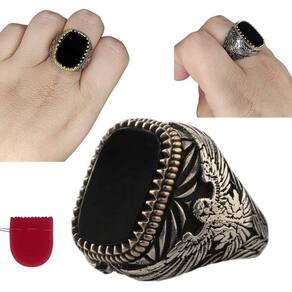 Anel Grande Prateado e Preto Brasão Águia Ajustável