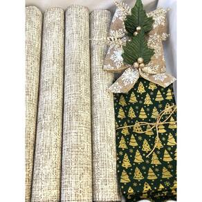 Anel Guardanapo + Jogo Americano + Guardanapo 4 Pça Modelos: Jogo Americano Off + Guardanapo Verde Árvore + Porta Guardanapo Rústico Dourado Kit Mesa Posta