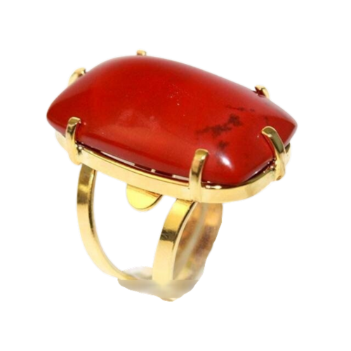 Anel Pedra Jaspe Africano Formato Cabochão Retangular Lapidação Manual estilo esmeralda aro ajustavel ao dedo serve do 14 ao 25