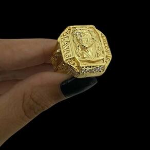 Anel Jesus Cristo Lado - Banhado a Ouro 18k Informações do Seu Pedido O que acompanha sua compra: - Saquinho de organza para armazenar sua joia com cuidado. - Embalagem em uma caixa elegante, ideal para presente. - Cupom de desconto exclusivo para sua próxima compra. - Flyer apresentando outros produtos da nossa coleção. - Carta de agradecimento especial. - Adesivo da marca ToJoia18k, um toque de carinho. - de 6 meses Especificações do Produto: - Material: Ligas metálicas de alta qualidade, desenvolvidas para fixação e absorção do ouro, finalizadas com verniz protetor. - Tonalidade: Aparência idêntica ao ouro maciço. - Produção: Artesanal, com atenção aos detalhes. - Tipo de banho: Banhadas a ouro 18k com 10 camadas espessas, finalizadas com verniz antialérgico . - Elos: Soldados dependendo do modelo . - Pedras cravejadas: Zircônia brilhante quando aplicável . Também temos produtos com banho a prata da mesma qualidade do ouro Tamanhos Disponíveis: Quando for feminino estará escrito no titulo - Cordões Masculinos: 60cm e 70cm padrão 70cm, consulte disponibilidade para 60cm via chat . - Cordões Femininos: 45cm e 50cm padrão 50cm, consulte disponibilidade para 45cm via chat . Nota: Nem todos os modelos possuem tamanhos femininos Feminino estará escrito no titulo . - Pulseiras: 18cm a 23cm padrão 21cm, consulte outros tamanhos via chat . Nota: Nem todos os modelos possuem tamanhos 18 e 19cm - Pingentes: Fiéis às imagens. Consulte-nos em caso de dúvidas. Espessura recomendada para cordão e pingente: A numeração do pingente estará no titulo Não são todos os modelos que temos do P a o GG - P: 1mm a 4mm - M: 4mm a 8mm - G: 6mm a 13mm - GG: 12mm a 18mm Dúvidas e Informações Adicionais: - : 6 meses termos enviados com o produto . - 7 Dias para devolver sem perguntas. - Prazo de envio: Até 24 horas úteis após confirmação do pagamento. Recomendações de uso: - Evite contato com produtos químicos aguarde o perfume secar antes de usar a peça . - Evite contato com shampoo, condicionadores e atividades físicas que causem suor excessivo. - Armazene em local seco e seguro, como o saquinho de organza fornecido. - Pode ser Utilizado no mar e piscina, mas lave com água corrente e sabão líquido neutro após o uso. Por que escolher ToJoia18k se você busca semi-joias luxuosas que combinem estilo, qualidade e sofisticação, encontrou o lugar certo Nossas peças recebem um banho espesso de ouro 18k, garantindo brilho duradouro e acabamento impecável. Design exclusivo e artesanal, perfeito para qualquer ocasião. Produtos feitos com materiais premium, garantindo durabilidade. Ao adquirir uma semi-joia ToJoia18k, você investe em qualidade, elegância e uma experiência única. Aguardamos sua compra Obs.: Pode ocorrer variação de fecho raramente . Imagens reais, sem edição. Qualquer Dúvida faça uma pergunta. Marca: Não Informado