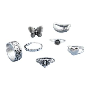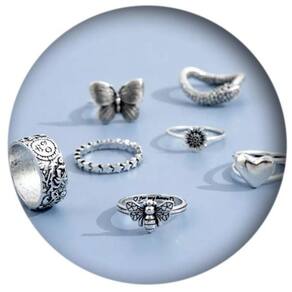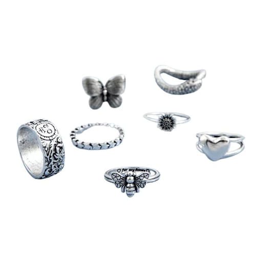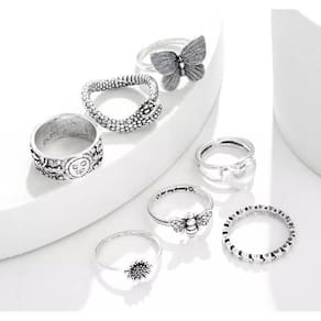 Descrição: - anéis luxuosos; - fashion e sempre na moda; - kit com 7 anéis; - formatos diferentes e luxuosos.