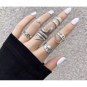 Descrição: - anéis luxuosos; - fashion e sempre na moda; - kit com 7 anéis; - formatos diferentes e luxuosos.