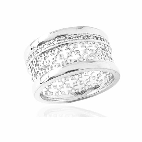Anel Largo Com Zircônias e Mini Quadrados Banhado a Prata