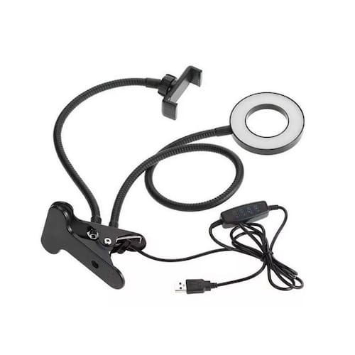 Anel luz iluminador led ring light suporte celular para vídeo muito procurado por maquiadores, barbeiros, fotógrafos e etc, este modelo de ring light vai te proporcionar a iluminação perfeita para fotografar ou gravar seus trabalhos para rede social ou até mesmo se o conteúdo for enviado para seu canal por exemplo. Excelente para criar vídeos ao vivo, seja com smartphone ou computador. Possui configurações de matiz e brilho para obter a iluminação certa. Basta escolher entre 3 modos de luz e 9 níveis de brilho para os seus usos preferidos - maquiagem, flat lay, fotos de selfie, vlogging de cenários escuros etc. Controles de fácil manuseio no cabo para ligar / desligar ou mudar para o modo de iluminação que você preferir. Pode ser utilizado como luminária de mesa. Fotos meramente ilustrativas. Especificações: modelo: professional live stream peso: 480g 3 modos de luz branca, amarela e mista e 9 níveis de brilho potencia: 12w material: aço e plástico abs cabo usb aproximadamente: 1,20m altura máxima aproximada: haste ring light 61,5 cm e haste smartphone 34,5 cm diâmetro aproximado do ring light: 8,5 cm compatibilidade: largura máxima aproximada do suporte telefone é de 8,6 cm conexões: usb 5v itens inclusos: 1 iluminador ring light com suporte articulado de mesa live stream para celular smartphone com controle 1 suporte para o celular smartphone