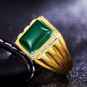 Anel Masculino Dourado Pedra Verde Banhado Ajustável Lindo Anel Ajustável Banhado a Ouro com Pedra Verde Perfeito para todas as ocasiões, inclusive para presentear, já que não precisa saber exatamente o tamanho pra comprar. Por ser ajustável cabe perfeitamente em qualquer circunferência anelar. Bela peça, acessório imponente, multifacetado, com fino acabamento. Largura de superfície: 20mm Peso líquido: cerca de 7,2g