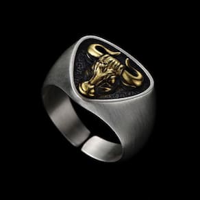 Anel Masculino Prata 925 e Dourado Touro Ajustável