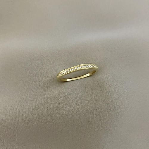 Anél Meia Aliança Trabalhada com Zircônia Banhado a Ouro