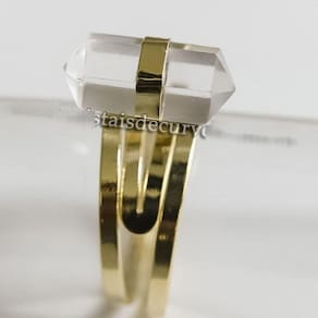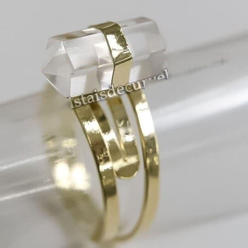 Anel Micro Pontinha Cristal de Quartzo Bi Ponta Aro Ajustavel Dourado, Anel Pedra Cristal natural de Garimpo com lapidação Manual Bi terminado Sextavado a montagem é com aro ajustavel ao dedo reforçado com banho em Flash dourado, Lindo brilho serve do 10 ao 30. Bi terminado são pontas com dupla terminação, ideais para usar no recebimento e envio de energia ao mesmo tempo, criando ponte energetica entre os cristais ao redor.