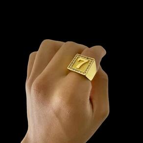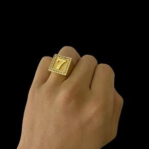 Anel Número 7 Cravejado Quadrado - Banhado A Ouro 18K