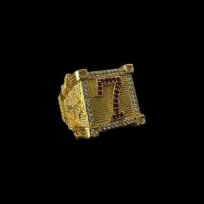 Anel Número 7 Rosa Cravejado Ajustável - Banhado A Ouro 18K - regulável