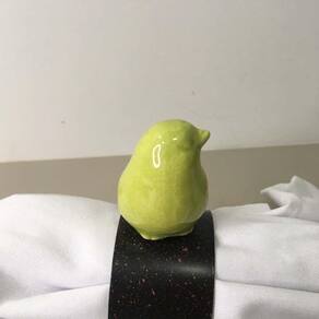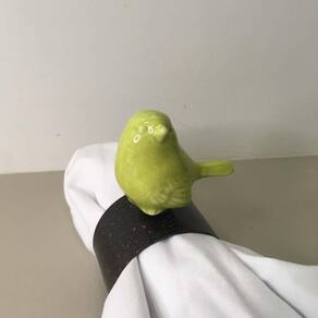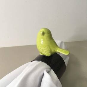 Detalhes que fazem toda a diferença. o Conjunto com 4 Anéis com pássaro de cerâmica amarelo e ferrugem trazem para a mesa um toque de exclusividade e sofisticação.