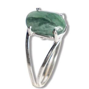 Anel Pedra Esmeralda Cabochão Oval 10mm Ajustável Prata 950, Anel em Prata 950 Pedra Esmeralda natural e exotica lapidado Cabochão Oval Liso Montagem manual Prata de lei com aro ajustavel em qualquer dedo joia reforçada com pedra Brasileira mineral autêntico de garimpo