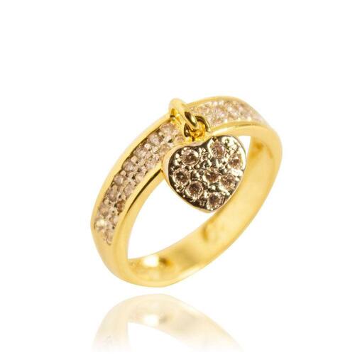 Anel Semijoia Pingente Coração de Zircônia Impéria Anel Banhado a Ouro 18k e acabamento em Ródio com Zircônia e Pingente Coração Coleção Impéria. Delicado e perfeito para embelezar e completar seu estilo