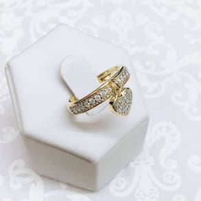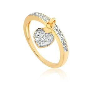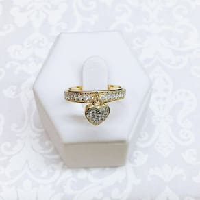 Anel Semi Joia Folheado em Ouro com Pingente de Coração Cravejado em Micro Zircônias Brancas e detalhes em RódioAnel Banhado a Ouro 18k e acabamento em Ródio com Micro Zircônia e Pingente Coração. Delicado e perfeito para embelezar e completar seu estilo