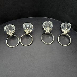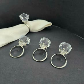 Material: Metal e Acrílico;Peso do Kit: 138grCores: Prata e Transparente;CONTEÚDO DA EMBALAGEM: KIT COM 4 ANÉIS DE PORTA GUARDANAPOS.