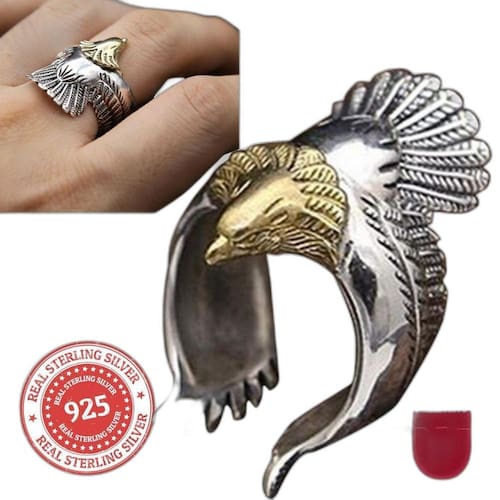 Anel Prata 925 Águia Majestosa Ajustável Lindo Anel Ajustável você pode apertar ou alargar, caso seja necessário Águia em Prata 925 esterlina Perfeito para todas as ocasiões, inclusive para presentear, já que não precisa saber exatamente o tamanho pra comprar. Por ser ajustável cabe perfeitamente em qualquer circunferência anelar. Bela peça, acessório imponente, com fino acabamento. Largura de superfície: 19mm Peso líquido: cerca de 6g