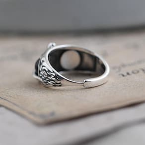 Anel prata 925 coruja olho azul ajustável