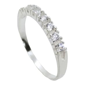 Anel de prata 925 meia aliança cravejado com zircônia - 2mm - anti alérgico Especificação: - modelo: meia aliança cravejado zirconia 2mm - metal: prata 925 - espessura: 2mm - acabamento: polido a mão - peso: 1,8 gramas aproximadamente . Confeccionado em prata 925, com excelente qualidade e fino acabamento; Não descasca e não desbota. Com pedra zircônia super delicado. A prata de lei ou prata 925 é a mais valorizada na alta joalheria e indica que a liga do metal é constituída de 92.5% de prata pura. Este é um padrão criado no século xiii pelo rei de portugal dom afonso ii que determina até hoje o seu elevado grau de pureza, garantindo assim a qualidade e durabilidade das jóias fabricadas com ela. O material que constituí o restante da composição é o cobre, não sendo níquel, o que torna todos os nosso produtos anti alérgicos. O valor do anúncio é referente a uma unidade do item da primeira foto. Todas as fotos que exibem outros acessórios serve para ilustrar o uso em conjunto. Caso tenha interesse, solicite a disponibilidade do item desejado no campo de perguntas. As fotos são reais para que você possa ver todos os detalhes do produto que está comprando. É exatamente o que você vai receber, sem surpresas, produtos ou diferente da foto. Marca: Não Informado Ean: 7905340798989