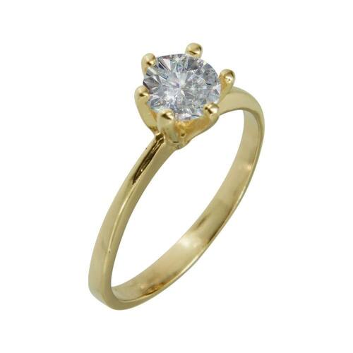 Anel em Prata Revestido em Ouro 18K Solitário 2.50mm com Zircônia Branca 5.50mm
