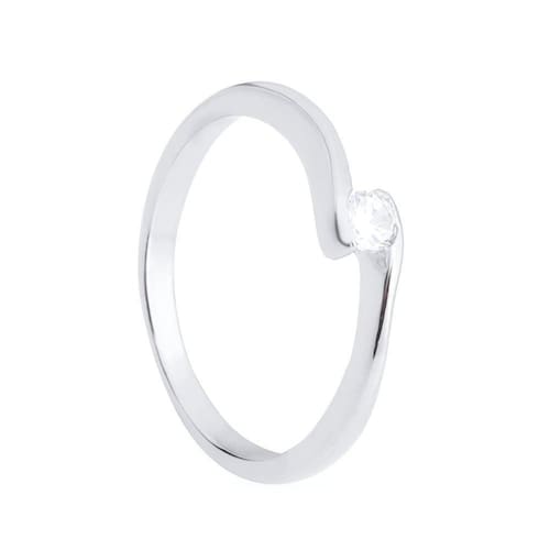 Anel Prateado Solitário Ponto De Luz Zircônia