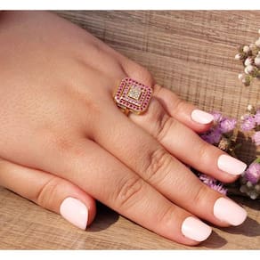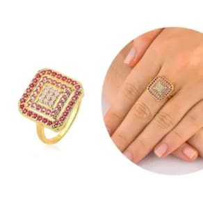 Anel Quadrado Degradê Cravejado Zircônias Coloridas Dourado Tamanho: N. 19 Cor: Cor Pink Seja bem vindo à Lizzy Fatin.
