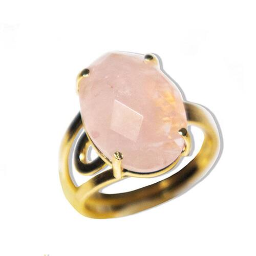 Anel Pedra Quartzo Rosa Gema Facetada Montagem em Dourado com aro Ajustável, Anel dourado Gema de Quartzo Rosa natural lapidação manual Facetado Montagem também manual não perca a chance de adquirir o seu ainda hoje! DETALHES DA PEDRA: NOME DAS PEDRAS: Quartzo Rosa Natural COR DAS PEDRAS: VIDE FOTO CORTE DAS PEDRAS: Gema facetado oval MEDIDA DAS PEDRAS: 20 x 15mm MEDIDA DO ARO: Ajustável PESO TOTAL DA JÓIA: 25ct aproximadamente Por ser pedra natural podem apresentar variações em suas tonalidades e grafismos Há também a possibilidade de ocorrerem pequenas inclusões que irão se assemelhar a fissuras, mas que são normais de minerais autentico de garimpo Hidratação oleo mineral Propriedades do quartzo rosa: O Quartzo Rosa é conhecido como a pedra do amor e da harmonia. Ele promove o amor-próprio, a paz interior e a cura emocional, ajudando a aliviar os maus animos e a tristeza. Além disso, fortalece relacionamentos e incentiva a compaixão, criando um ambiente de carinho e serenidade. Ideal para quem busca equilíbrio emocional e conexão afetiva. Marca: CristaisdeCurvelo