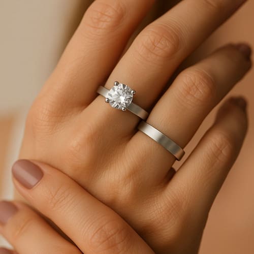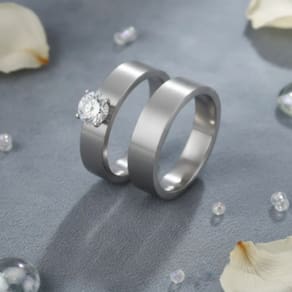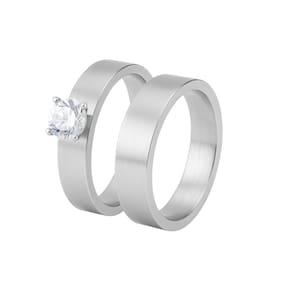Anel Solitário + Aparador Prateado em Aço Inoxidável 360L
