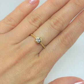 Anel Banhado a Ouro 18k  com  Zircônia Coração e Aro Trabalhado Fininho. Delicado e perfeito para embelezar e completar seu estilo.