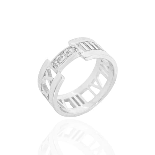 Anel Trabalhado Números Romanos e Zircônias Banhado a Prata