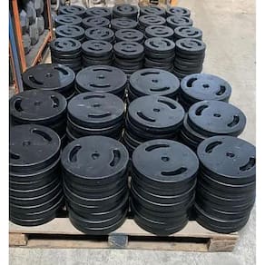 As Anilhas Injetadas são fabricadas com alma de ferro fundido e revestidas com uma grossa camada de PVC Policloreto de Vinila .