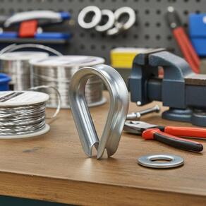 A Anilha para Cabo de Aço Nove54, também conhecida como sapatilho, é indicada para proteger a curvatura dos cabos de aço em olhais, reduzindo o desgaste por atrito e prolongando a vida útil do cabo. Fabricada em aço carbono com acabamento zincado, oferece excelente resistência mecânica e à oxidação.